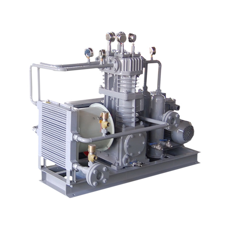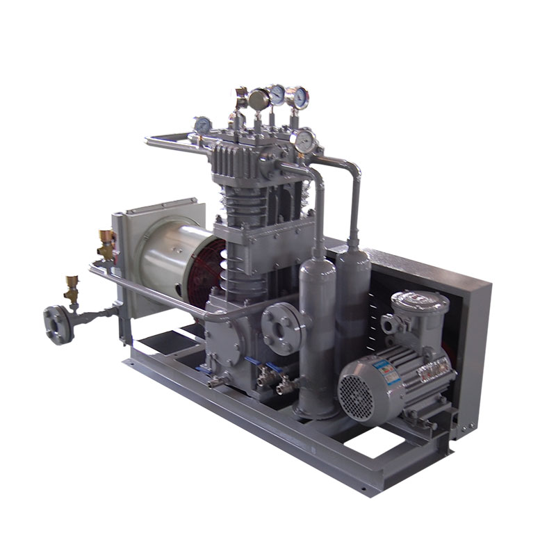 環(huán)氧乙烷壓縮機是我公司新型產(chǎn)品,它集壓縮機、氣液分離器、安全閥冷卻器、電動機等為一體,成一完整的機組。具有功能多、體積小、重量輕、功率小、運行平穩(wěn)可靠等特點,并有良好的安全性能。由于采用獨特的無油潤滑設(shè)計,氣缸內(nèi)無需用油潤滑,因而不會對介質(zhì)造成污染,使被輸送物質(zhì)保持純凈。本機設(shè)計成機組型式,許多管線上的附件都安裝在機組上,省卻了氣液分離器、穩(wěn)壓罐、安全閥、進氣過濾器等,減小了機房的面積,減少了操作維護工作量,節(jié)省了投資。