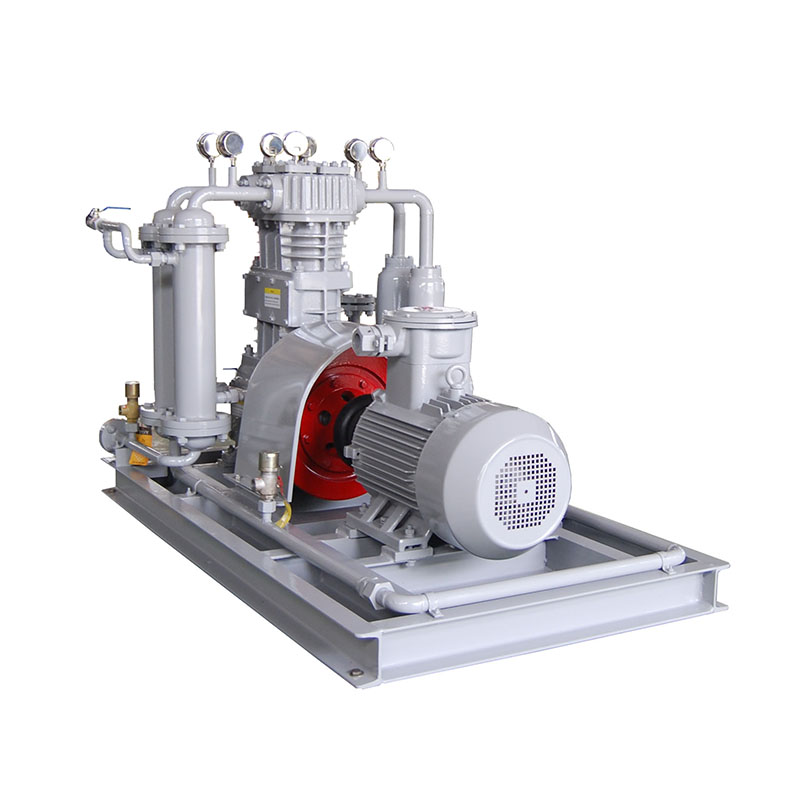 乙烯壓縮機壓縮機是我公司新型產品,它集壓縮機、氣液分離器、安全閥冷卻器、電動機等為一體,成一完整的機組。具有功能多、體積小、重量輕、功率小、運行平穩(wěn)可靠等特點,并有良好的安全性能。它為輸送氫氣,可為用戶最大限度地創(chuàng)造經濟效益。由于采用獨特的無油潤滑設計,氣缸內無需用油潤滑,因而不會對介質造成污染,使被輸送物質保持純凈。本機設計成機組型式,許多管線上的附件都安裝在機組上,省卻了氣液分離器、穩(wěn)壓罐、安全閥、進氣過濾器等,減小了機房的面積,減少了操作維護工作量,節(jié)省了投資。